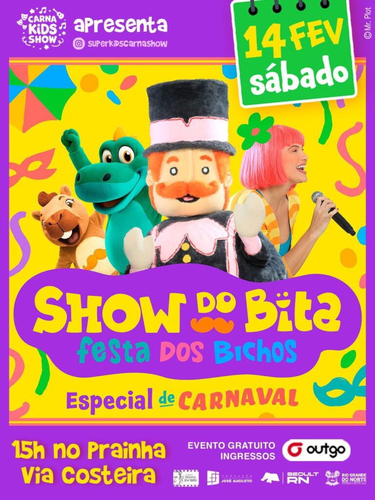 O Show do Bita – Bloco do Bita Especial de Carnaval é uma realização do Super Kids Carna Show e conta com patrocínio da Lei Câmara Cascudo, Fundação José Augusto, SECULT RN e Governo do Estado do Rio Grande do Norte, reafirmando o compromisso com a valorização da cultura e o acesso democrático ao entretenimento.