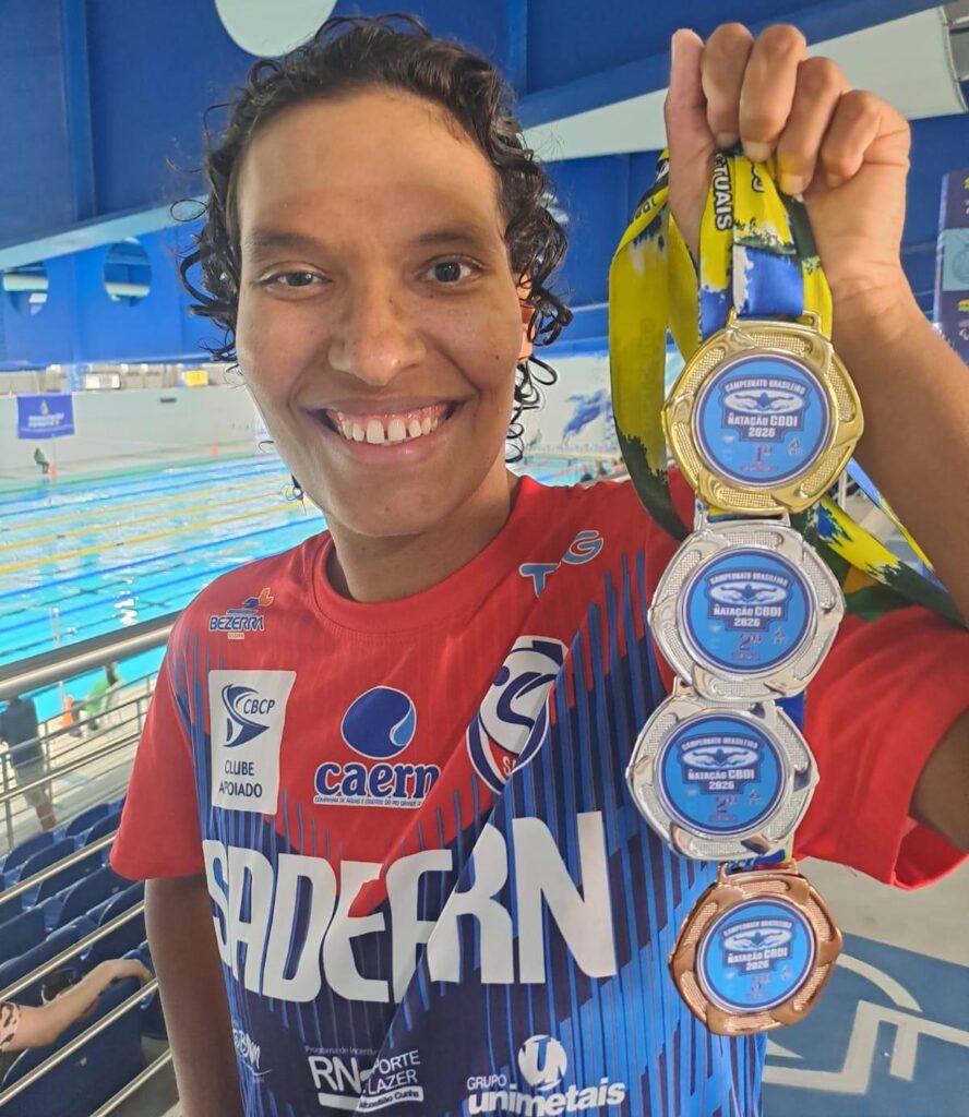 Sete provas, sete medalhas na primeira competição da temporada organizada pela CBDI, a Confederação Brasileira de Desportos para deficientes intelectuais. Um resultado que surpreendeu que acompanhou os paratletas da Sadef/RN, Davi e Maria Cláudia. “Esta competição superou minhas expectativas, tivemos resultados muito expressivos, com conquistas importantes que refletem dedicação, disciplina e todo o processo de preparação dos nossos atletas”, diz Carol Carvalho.
