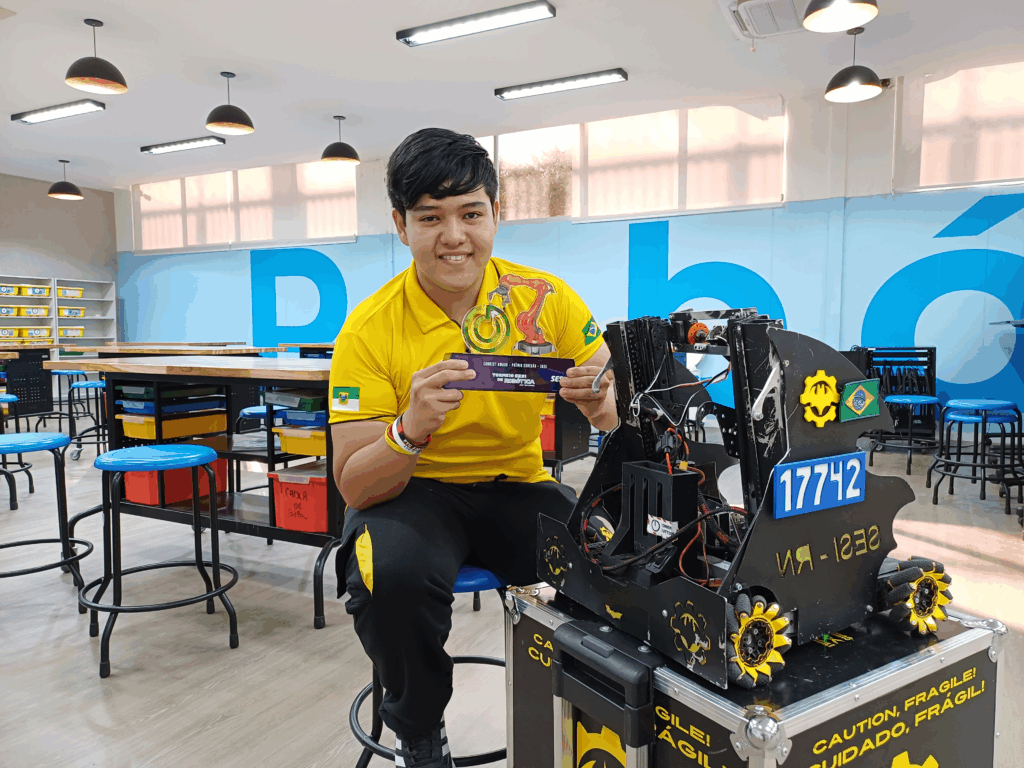 A trajetória do natalense perpassa aprendizados na Programação, mas também no enfrentamento a desafios, expansão de horizontes e superação da zona de conforto. “Antes de eu entrar para a Robótica, eu só programava em blocos, que é uma linguagem simples, para iniciantes, e eu nunca tinha passado disso por [ter] medo. É bem complicado programar em texto quando você não sabe absolutamente nada. Mas depois de ganhar bastante experiência programando aqui com os robôs de Lego, que foi a categoria que eu comecei, acabei criando coragem. Aí um colega começou a me ensinar o que ele sabia sobre Java, e agora eu já programo [em Javascript], o que é super vantajoso para quando eu começar a seguir carreira nisso”, afirma Arthur Breno. Às vésperas de prestar o Enem (Exame Nacional do Ensino Médio), ele pretende cursar Engenharia de Software e Engenharia da Computação, além de ter interesse em Desenvolvimento de Jogos.