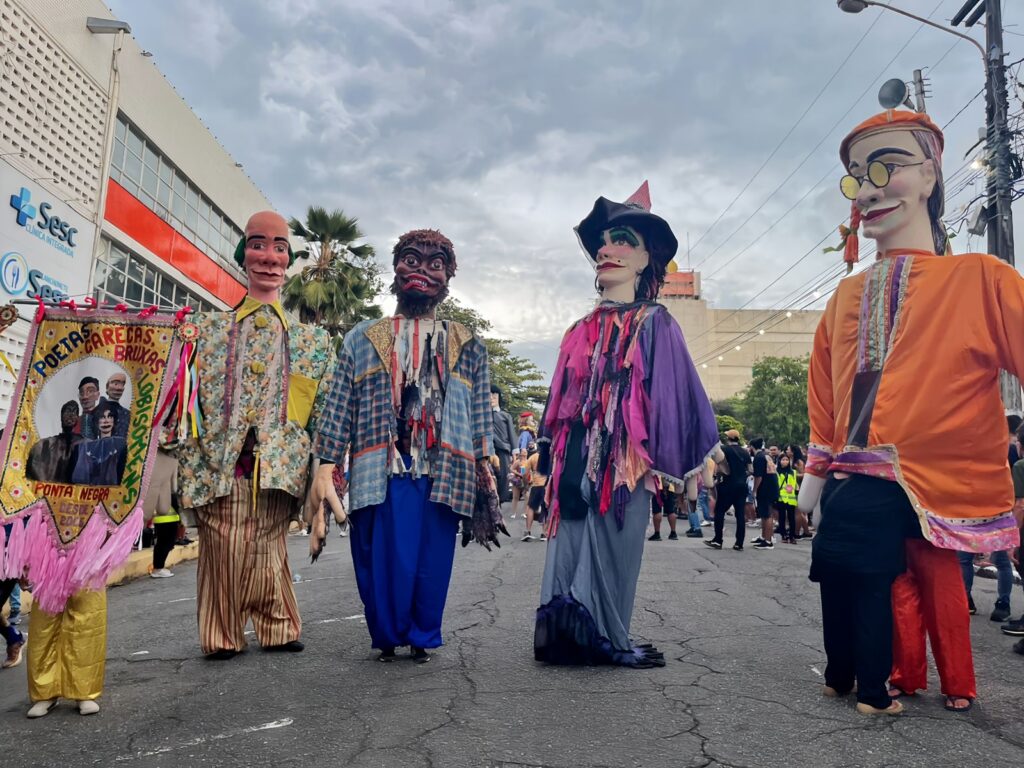 No sábado (14), é a vez dos bonecos gigantes do bloco Poetas, Carecas, Bruxas e Lobisomens ganharem as ruas no desfile oficial. A concentração começa às 16h na Praça dos Gringos, com saída às 18h e percurso até o Praia Shopping.