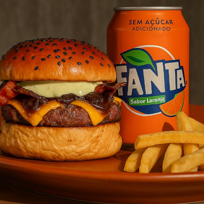 O hamburger mais vendido do mundo na versão capangas, carne bovina feita na churrasqueira acompanhado de cheddar fatiado maionese de Jack Daniels com salada americana (picles, alface e cebola)