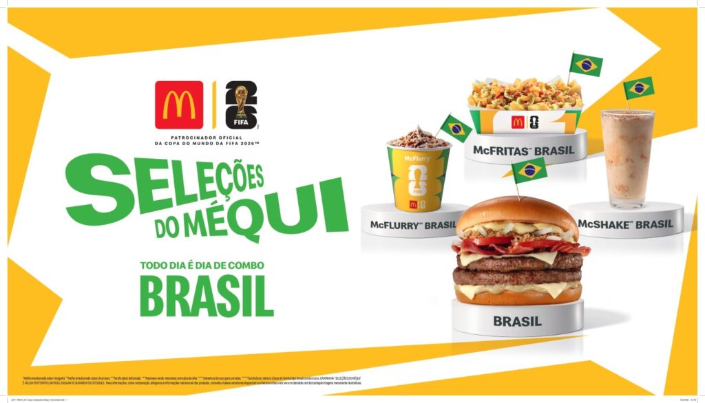 Saiu a convocação mais aguardada para Copa do Mundo FIFA 2026: o McDonald’s apresentou nesta quarta-feira (1°) o primeiro item do seu menu “Seleções do Méqui”, com sanduíches que representam diferentes países. Hoje, o combo Brasil já entra em pré-venda exclusivamente pelo app do Méqui e, até o dia 6 de abril, os Méqui Lovers podem comprar antecipadamente o Sanduíche Brasil, McFritas Brasil, McShake Brasil e o McFlurry Brasil.